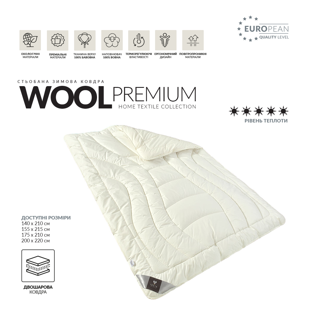 WOOL PREMIUM este o pătură de iarnă super-caldă, cu două straturi, realizată din materiale naturale.