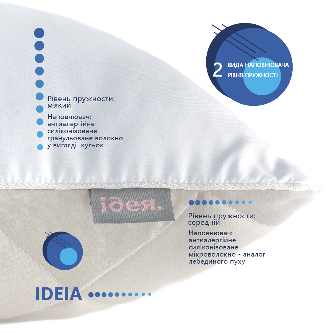 Подушка имеет 2 камеры. В каждом разделе содержится наполнитель с разными свойствами: